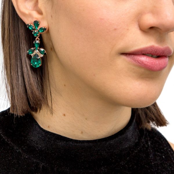 Aros de cristales Swarovski verde esmeralda. Baño de oro rosa. Diseño bellísimo y encantador.